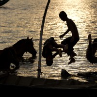 Some of these shots were not related to what we’re doing, but it’s what encouraged me all the way, during the relaxing time, I went over to the nearby place where children were playing in the river, and left alone their horses washing by themselves ![]()