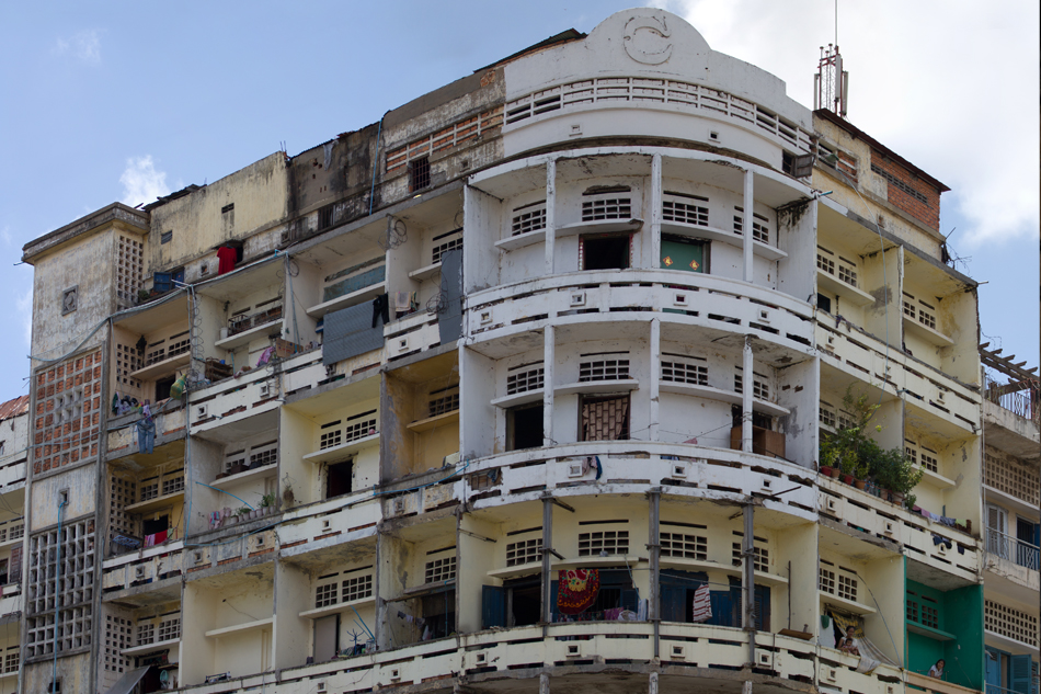 This building located on the corner of Monivong blvd. and Kampuchea Krom street, which built in the 1960s. There used to be a huge advertising board blocked at the front of this old building, it made me puzzled for not knowing what happened, why they decided to remove this large blockage board. But happy to have the whole building exposed once again.