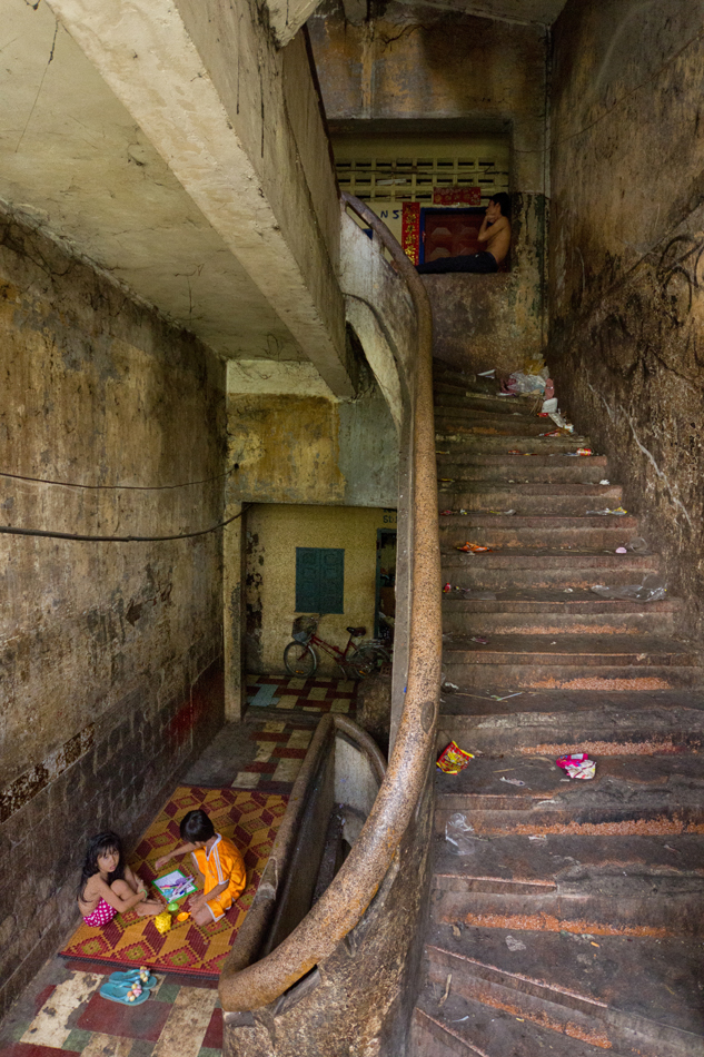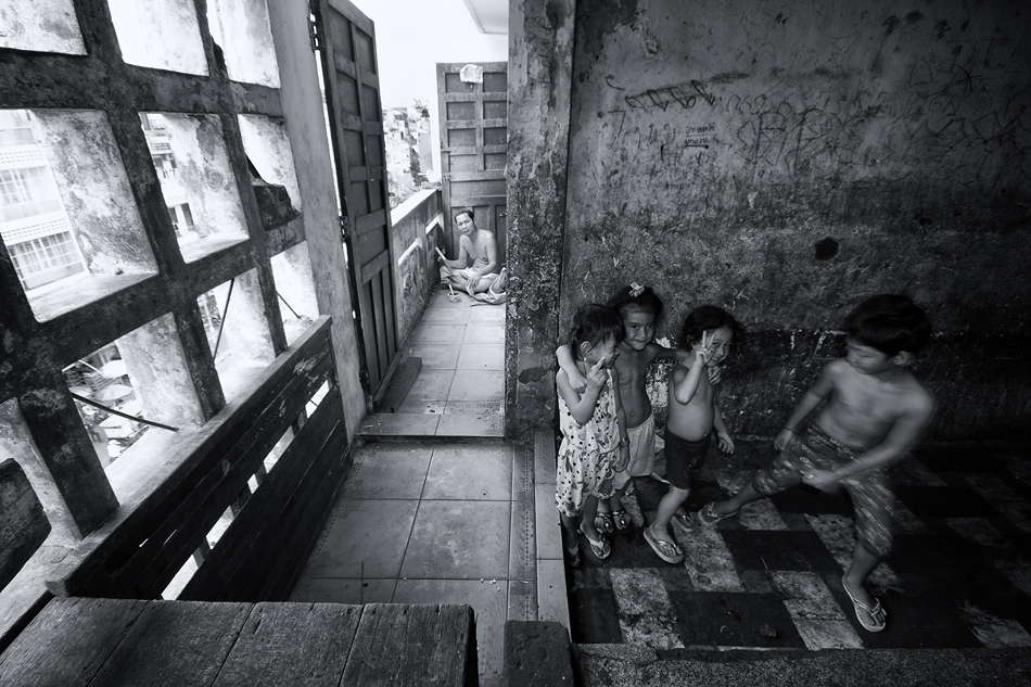It’s pretty dark in this building, my friend told me that he used to encountered a group of local gangsters using drug on the hallway during his first time here. I was so thrilled that time, not because I worry of this kind of thing, but I was shocked in seeing the condition of life in this up-the-sky slum. I’ve seen water leakage and garbage all over the places, poor housing and lack of hygiene, many faces could be the ladies who working for the night entertainment industries, and many new born children playing around in unclean playground.