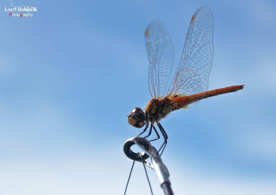 Description: I was fishing off the bridge and coincidentally this little dragonfly stopped by and rest on my fishing pole, i managed to get a close shot as he flew back and forth a few times and flew aways after a couple snapshots