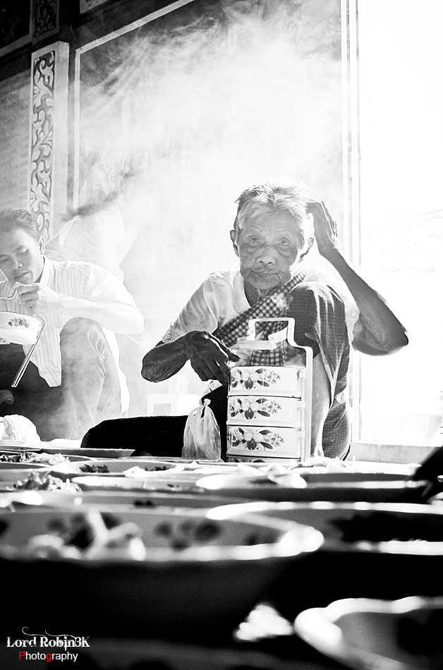 Description: it’s 2nd day of Pchum Ben Day in Cambodian Buddhist religion, we went to at least 5 pagodas todays. I came across with an elderly and found an interesting spot where thick cloud of smoke behind and covering her back as she was preparing the food for the monks and dedicate for her passed aways families and friends.